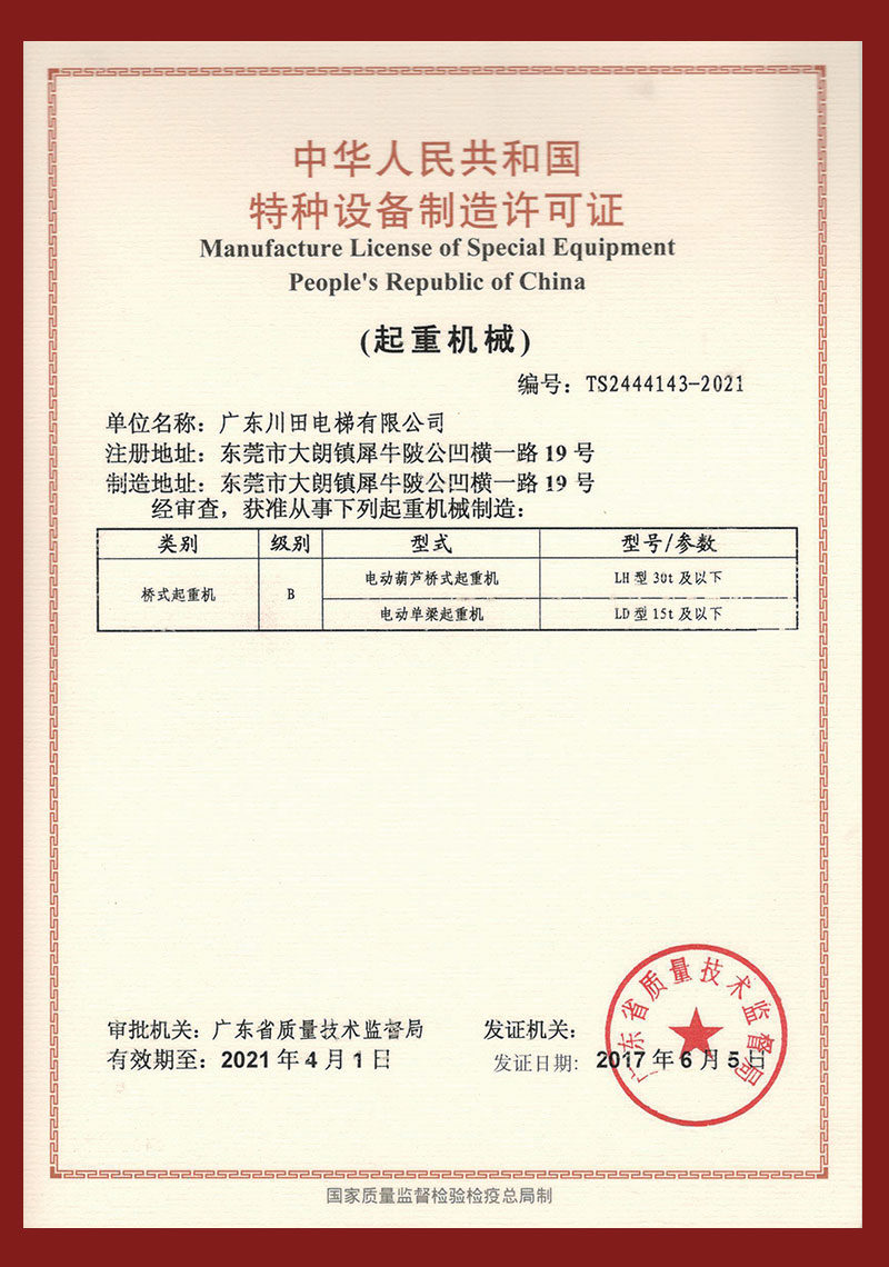 特种设备制造许可证(起重机械)